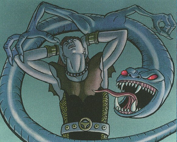 This version was a lot better. The mana base was still good. Sungrass Egg was a lot better than Barbed Sextant. The fetches and tutors made Sylvan Library playable. The threats were better and you even had a variety of answers to things. After some testing, Sakari suggested cutting Enlightened Tutor and just playing more of the most poweful cards. Triskelion was just bad against everything, Snake Basket was worse than Decree of Justice, Phyrexian Processor was unreliable and Nevinyrral’s Disk was too slow. Also, we came to conclusion that Sylvan Library was just strictly better than Mulch so we cut those althogether. Most of the test games were decided by resolving Mishra’s Helix or by overpowering the board with Masticore and Phantom Nishoba. Decree of Justice was of course great against control, but also could be used to buy more time versus aggressive decks.
